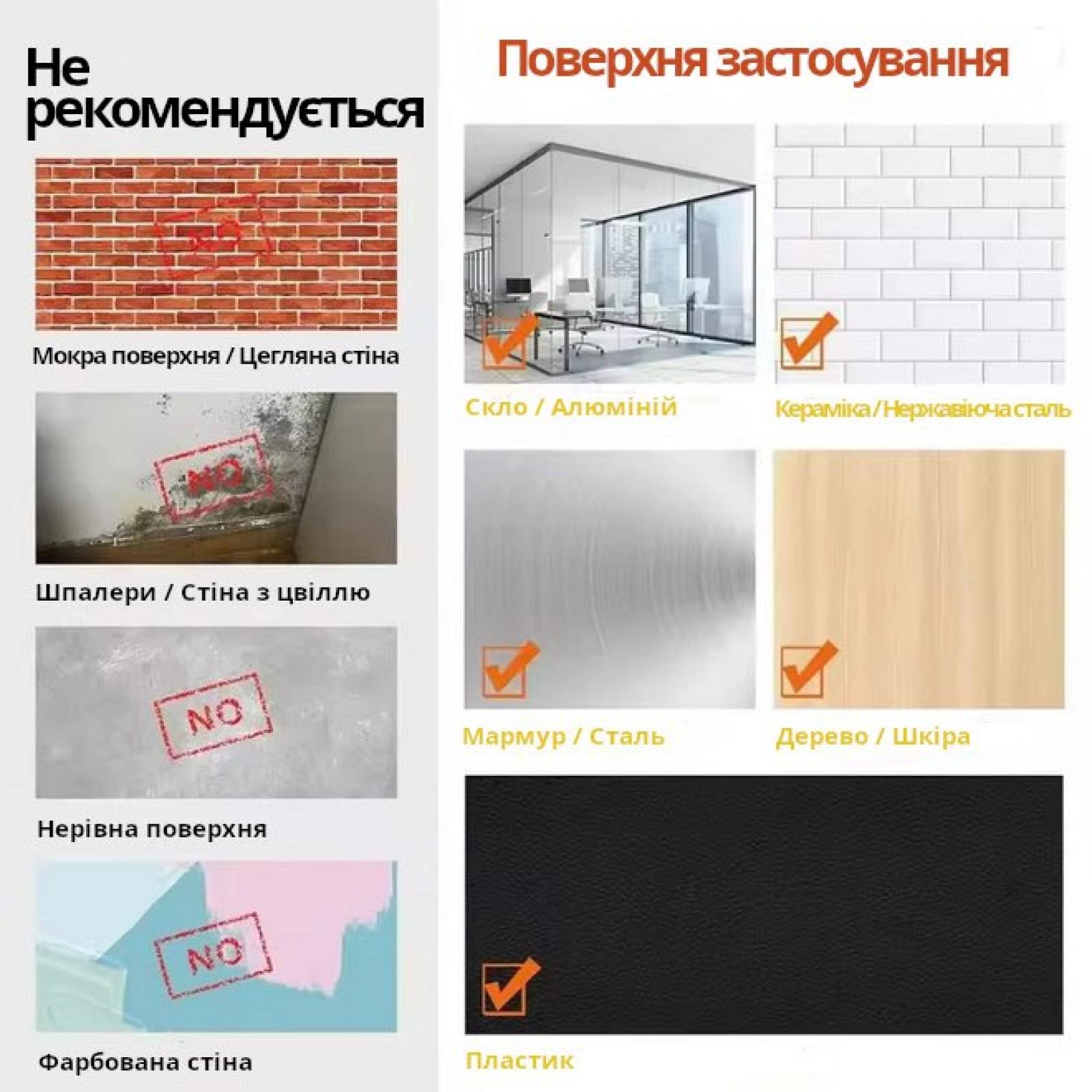 Наногелева стрічка підходить майже для будь-якої гладкої, чистої та сухої поверхні. Її спеціальна наноформула компенсує незначні нерівності поверхні. Просто очистіть контактну поверхню спиртом або будь-яким миючим засобом без силікону, наклейте стрічку на предмет і щільно притисніть її до стіни. Будь-який предмет, закріплений за допомогою цієї стрічки, можна видалити будь-коли. Не залишиться жодних видимих слідів його перебування там. Його можна використовувати для кріплення або вставки автомобільних тримачів для телефонів, плакатів, фоторамок, настінних наклейок, гачків, гаджетів, липких подушечок, декоративних латок та інших предметів.