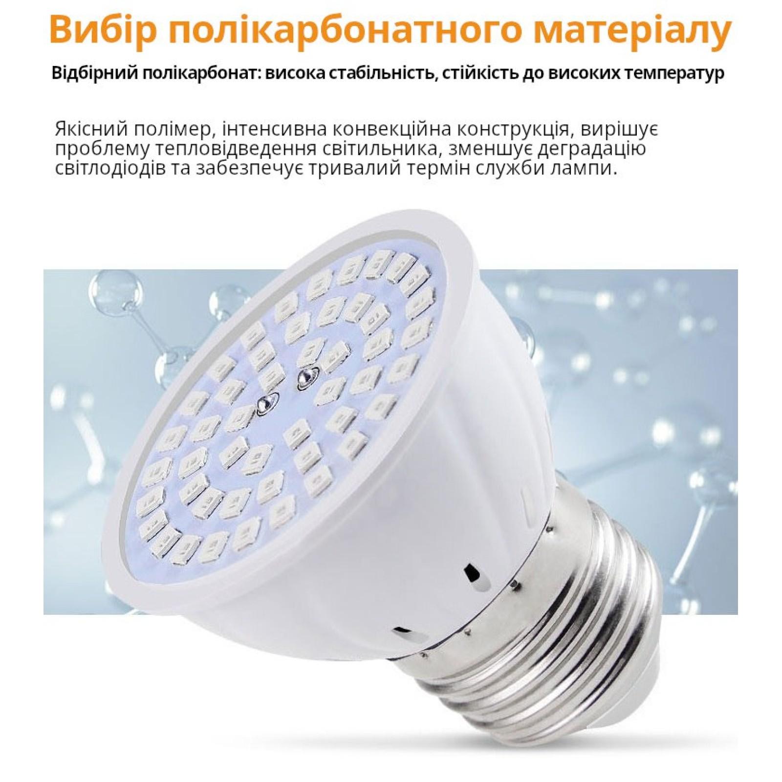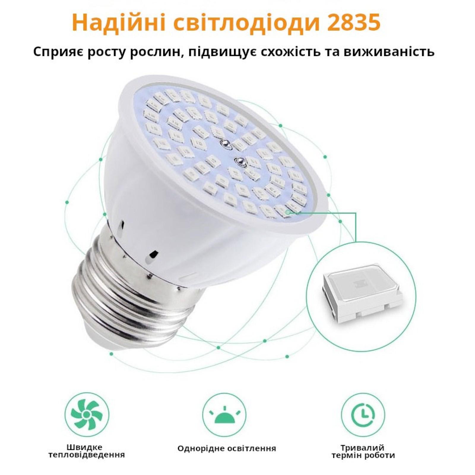 Рекомендована площа освітлення: квадрат 15х15 см (при висоті лампи над рослинами – 20-30 см).