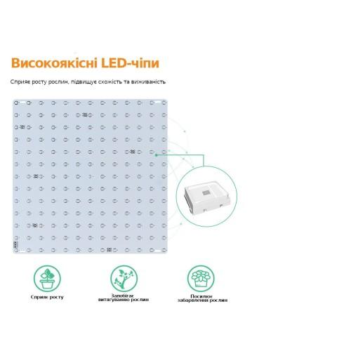 Світлодіодна фітопанель Full Spectrum GR-45 підходить для циклу росту рослин. Сині світлодіоди з довжиною хвилі 450 нм та червоні 630-650 нм, пропорція 1:2,5. Діапазон випромінювання розширено за рахунок додавання таких кольорів як білий, інфрачервоний (далекий червоний) 720 нм, ультрафіолетовий 395 нм. Такий спектр підходить для будь-якого універсального застосування (розсади, кімнатних кольорів, зелені); доречний на всіх етапах росту рослини за винятком пророщування насіння, так як далекий червоний може пригнічувати їх проростання, як тільки проросли - можна.