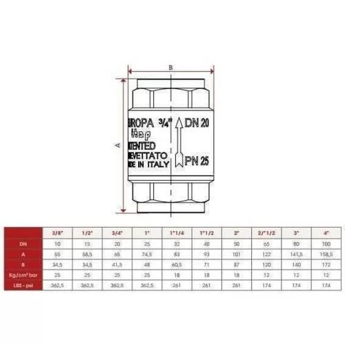 Клапан зворотного ходу води 1″ EUROPA (100) ITAP з латунним штоком