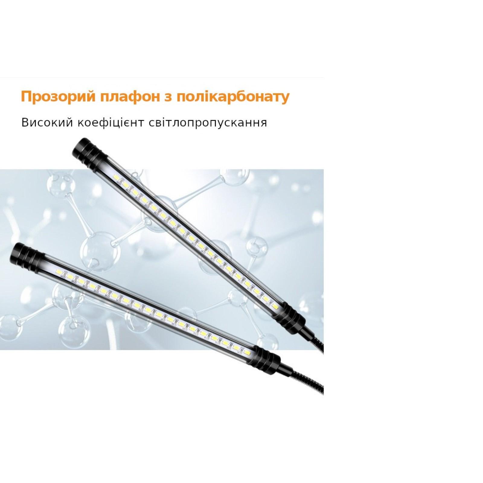 Два незалежні гнучкі тримачі: Кожен плафон має власний штатив, що дозволяє направляти світло під різними кутами та на різну висоту, ефективно покриваючи площу або групи рослин різної висоти.