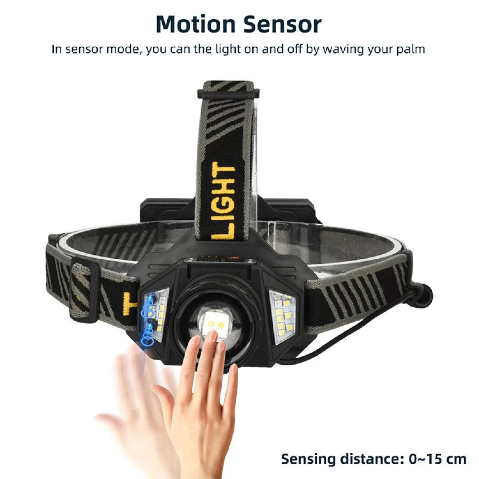 Ліхтар налобний T503A-2TG(white+yellow)+SMD(white+red), Motion Sensor, Li-Ion акумулятор, power bank, ЗУ microUSB