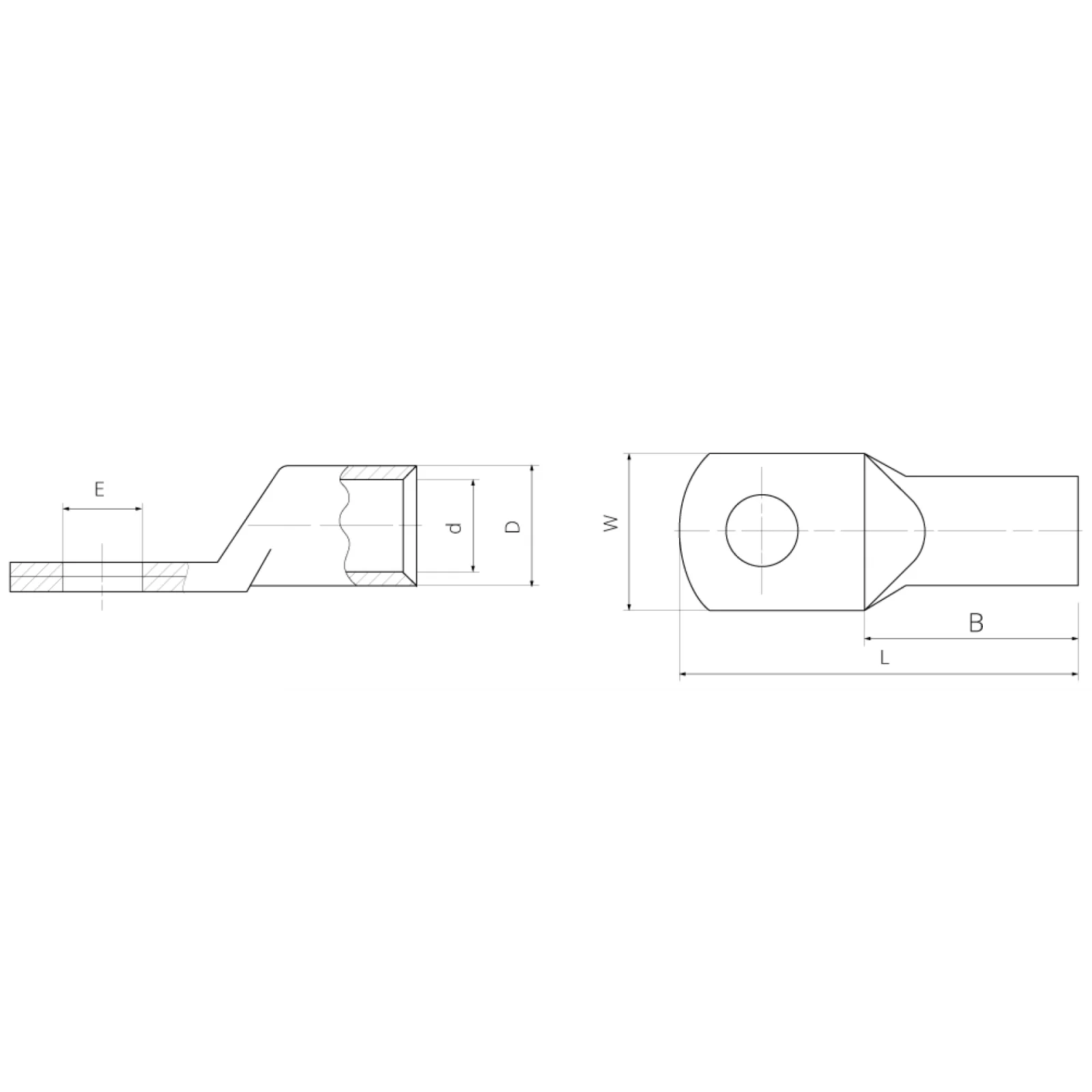 - Внутрішній діаметр хвостовиків розрахований для мідних провідників 1, 2 і 3 класів гнучкості.