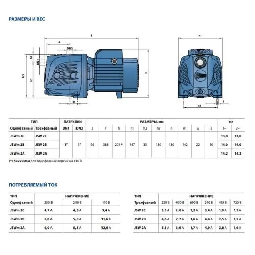 Самовсмоктувальні насоси Pedrollo серії JSW рекомендуються для перекачування чистої води без наявності абразивних частинок та хімічно не агресивних рідин для матеріалів, з яких виготовлений насос.