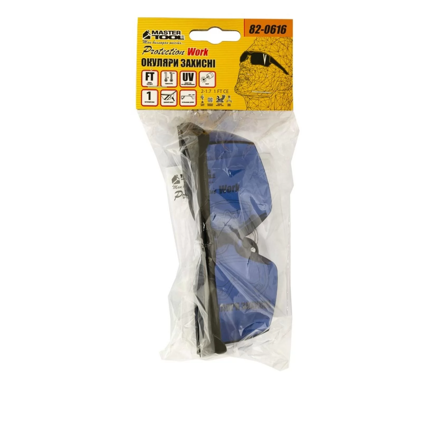 Окуляри відкриті MASTERTOOL КОМФОРТ панорамна лінза напівоправа з регульованими дужками l-клас сині