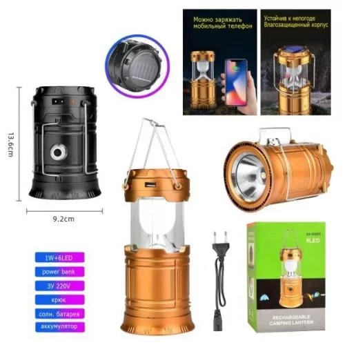 Фонарь переносной 5800T-1W+6LED, power bank, солнечная батарея, встроенный аккумулятор, ЗУ 220V