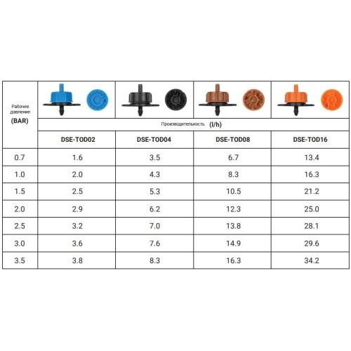 Капельница с турбулентным потоком, 2 л/ч, выход 4мм, DSE-TOD02