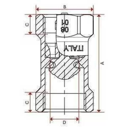 Технические характеристики клапан обратного хода воды ITAP(101) ″BLOCK″ А Высота – 47,5 мм В – наружный диаметр – 28 мм