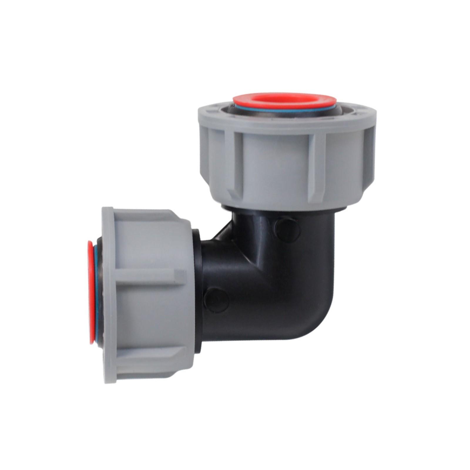 Колено с накидными гайками 1"-1" ВР применяется при монтаже систем полива и орошения. Выполняет функцию соединения ПЭ труб, а также присоединения труб к различному водопроводному оборудованию.
