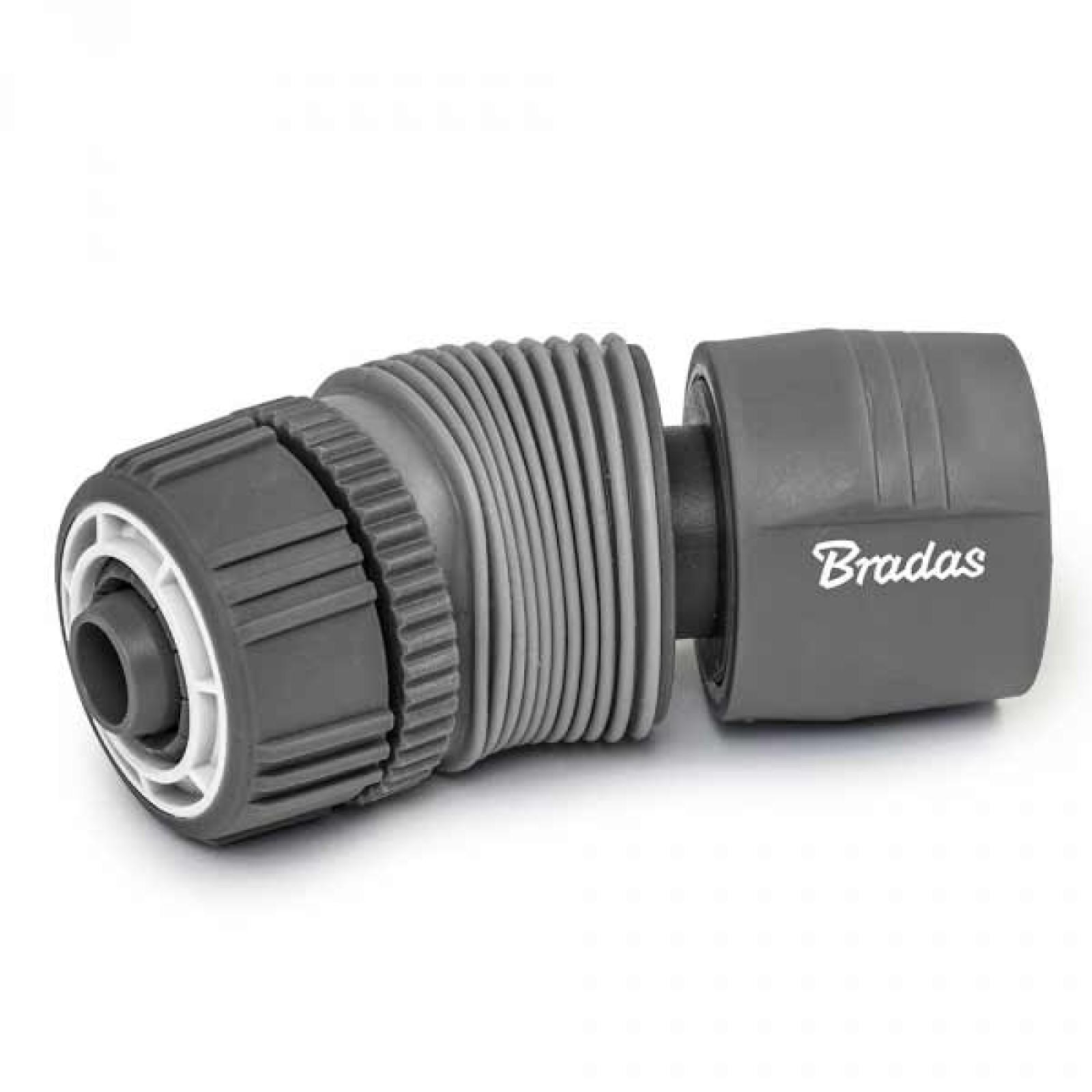 Изготовлен из высококачественного пластика, имеет нескользящее покрытие SOFT.Предназначен для соединения шланга диаметром 1/2" или 5 стандартный ниппель; позволяет быстро и легко изменять устройства для полива. Устанавливается на оба конца шланга, надежно фиксируясь за стенки с помощью зубцов специальной формы.