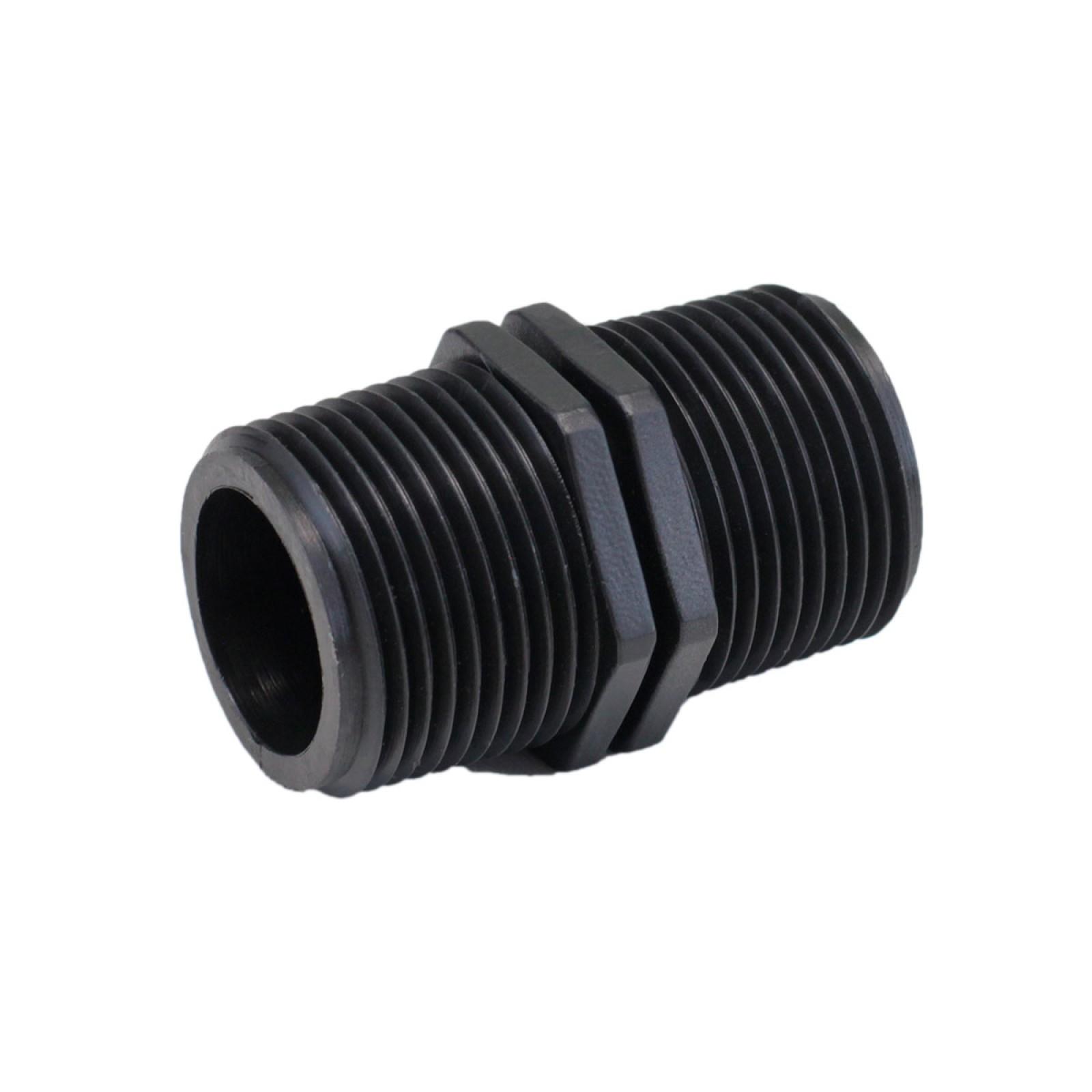 Соединительная муфта с наружной резьбой применяется при монтаже систем полива и орошения. Выполняет функцию соединения ПЭ труб, а также присоединения труб к различному водопроводному оборудованию.