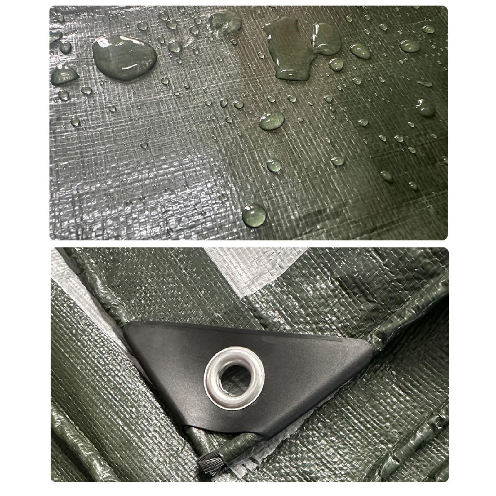 • Надежный крепеж: В край встроены алюминиевые люверсы (кольца), которые позволяют быстро и надежно закрепить тент с помощью подручных средств (шнура, веревки и т.п.).