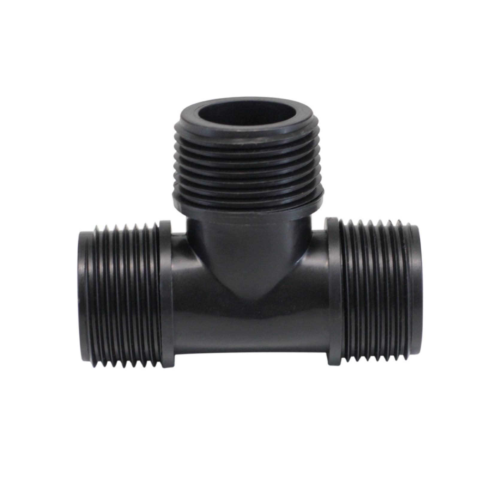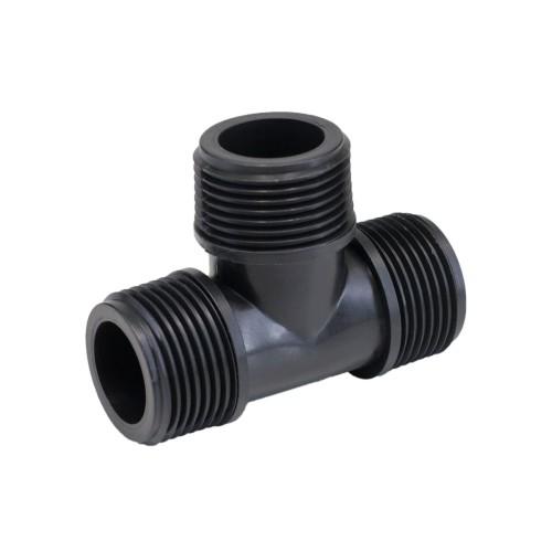 Тройник с наружной резьбой 1" применяется для соединения резьбовых фитингов при монтаже систем полива и орошения.