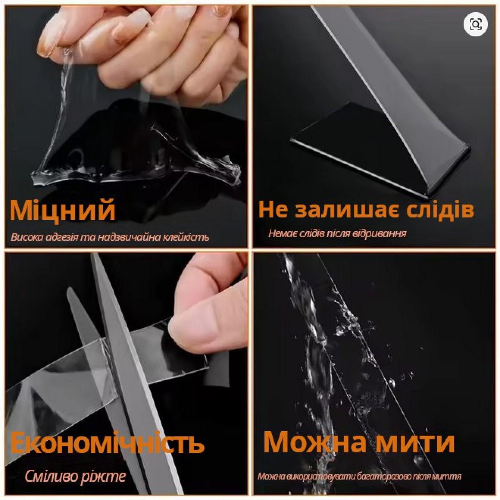 Наногелевая лента подходит почти для любой гладкой, чистой и сухой поверхности. Ее специальная наноформула компенсирует незначительные неровности поверхности. Просто очистите контактную поверхность спиртом или любым моющим средством без силикона, наклейте ленту на предмет и прижмите ее к стене. Любой предмет, закрепленный с помощью этой ленты, можно удалить в любое время. Не останется никаких видимых следов его пребывания там. Его можно использовать для крепления или вставки автомобильных держателей для телефонов, плакатов, фоторамок, настенных наклеек, крючков, гаджетов, липких подушечек, декоративных заплат и других предметов.
